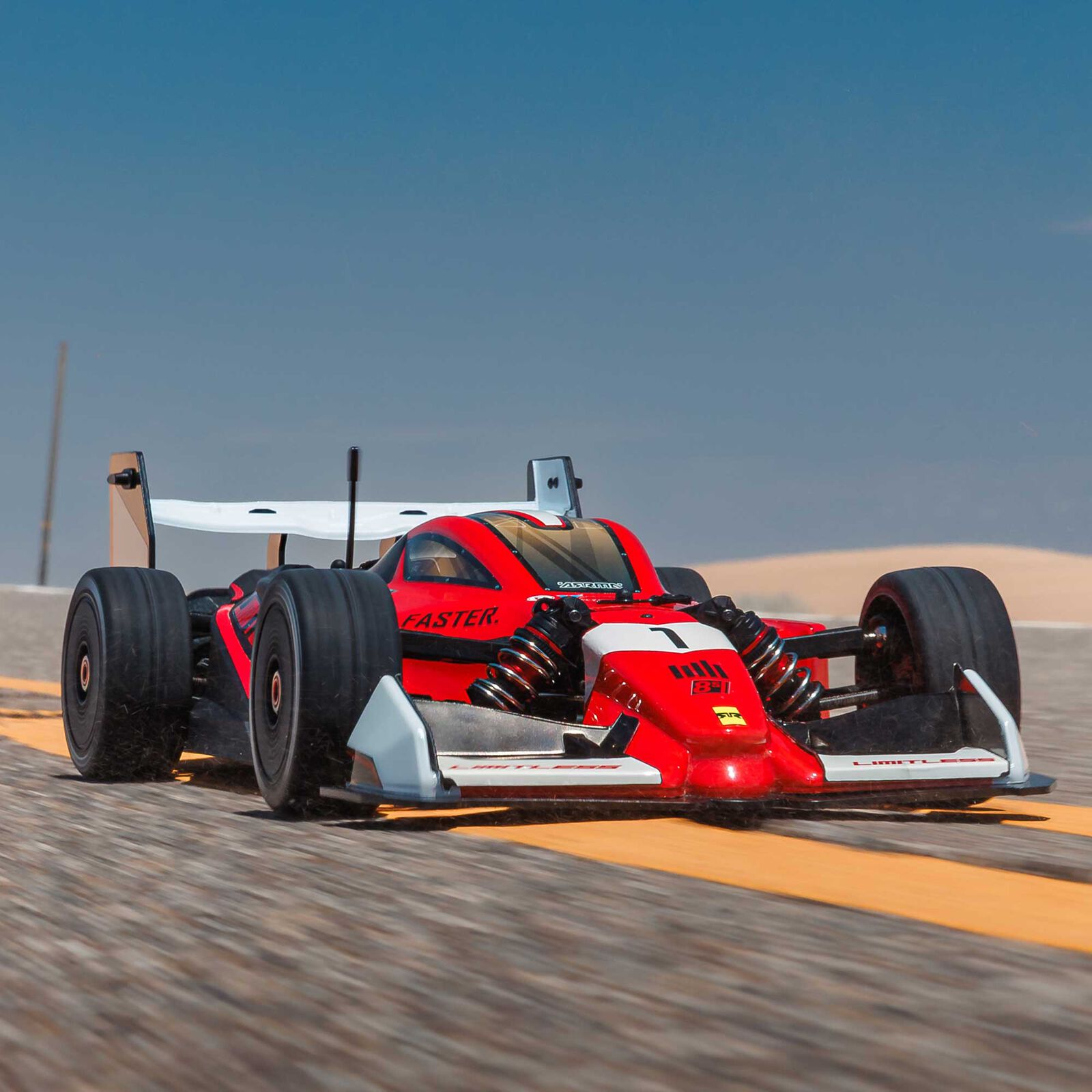 Te presentamos el ARRMA® LIMITLESS™ 120 8S BLX a escala 1/7, el rey de los bólidos y oficialmente el coche RC de serie listo para usar más rápido del planeta. Esta bestia alcanza más de 193 km/h con engranajes de velocidad opcionales incluidos, la potencia de Spektrum y un paquete aerodinámico ajustable que desafía la resistencia al viento.
