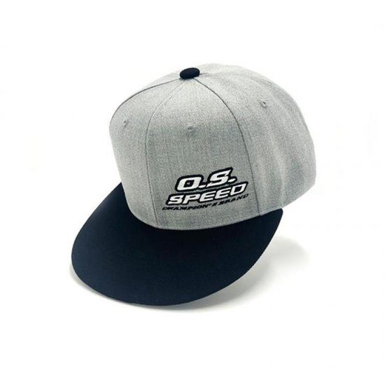 Gorra oficial de la marca OS Speed con frente plano de color principal, gris