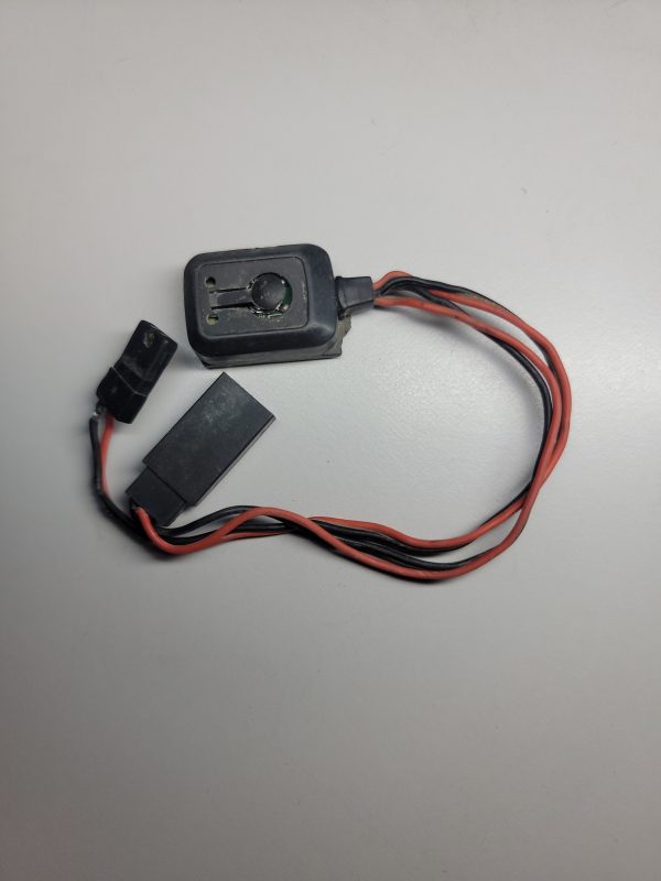 Switch electronico diseñado para el sistema de radio de cualquier carrito de RC. Las condiciones del switch estan en la foto. Este switch en especifico, fue reparado, y se le puso switch interno nuevo para que no tenga falla alguna. Le hace falta el sticker de arriba y las orejitas de sujecion