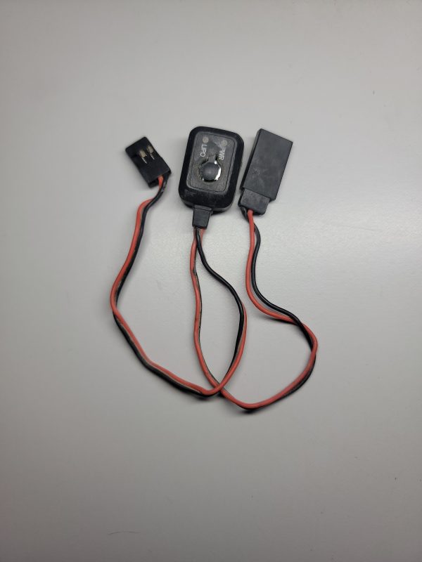 Switch electronico diseñado para el sistema de radio de cualquier carrito de RC. Las condiciones del switch estan en la foto. Este switch en especifico, fue reparado, y se le puso switch interno nuevo para que no tenga falla alguna. Le hace falta las orejitas de sujecion.