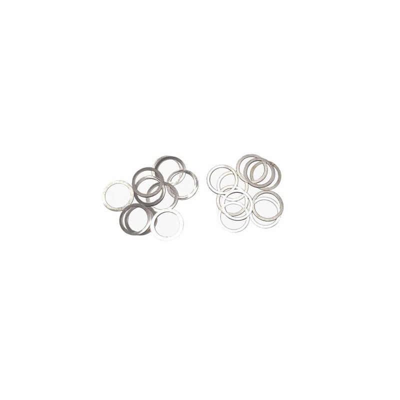 Este es el pack de 20 arandelas de diferencial de Ultimate Racing. Estas finas arandelas se utilizan para realizar un ataque perfecto entre la corona y el piñón de diferencial, evitando dejar juego entre ambas piezas. Se colocan entre el rodamiento del vaso del diferencial y la caja y se ponen indistintamente a un lado o otro dependiendo de las necesidades. Este pack incluye las siguientes medidas: 16X13x0,10(10uni.) 16X13X0,2(10uni.)